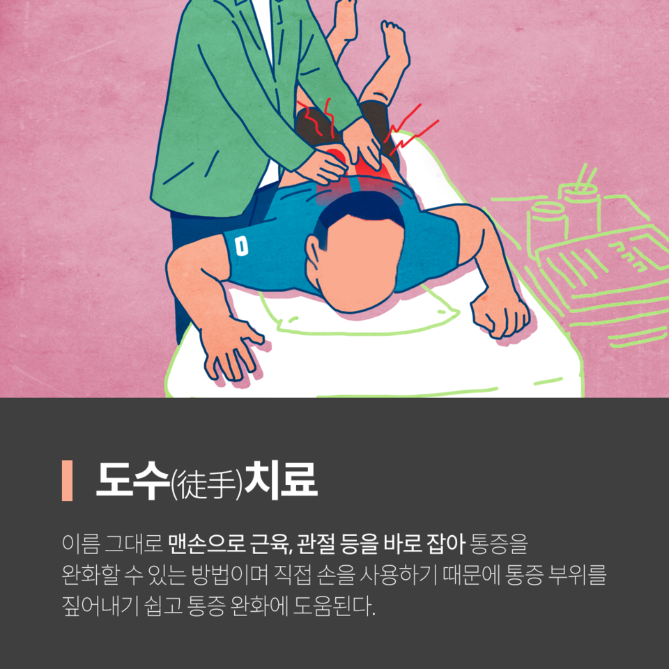 예기치 못한 교통사고나강한 충격으로 인한 외상을 당하면 가장 먼저 나타나는 증상이 증이다. 통증이 있으면 원인 치료가 필수지만, 수치료와 물리 치료 등을 병행하는 경우가 많다. 도수치료가 어떤 것인지, 도수치료는 통증 해소에 도움이 되는 것인지 도수치료 전문가에게 궁금한 점을 들어 봤다.