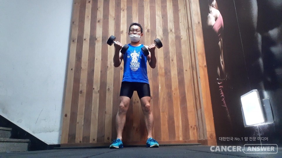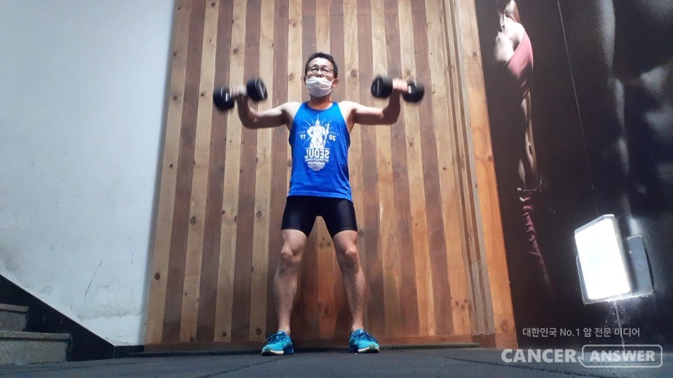 집에서도 고중량 아닌 고강도 웨이트 트레이닝이 가능하다. 특히 적절히 서킷을 구성해 운동하면 누구나 자신에게 맞는 고강도 운동법을 개발할 수 있다. 기자는 8kg 덤벨을 이용한 상체훈련 서킷을 구성해 봤다.