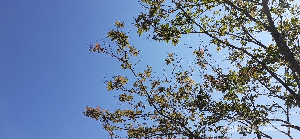 빛나는 태양과 겹쳐지면서 가을색을 발하고 있어요.