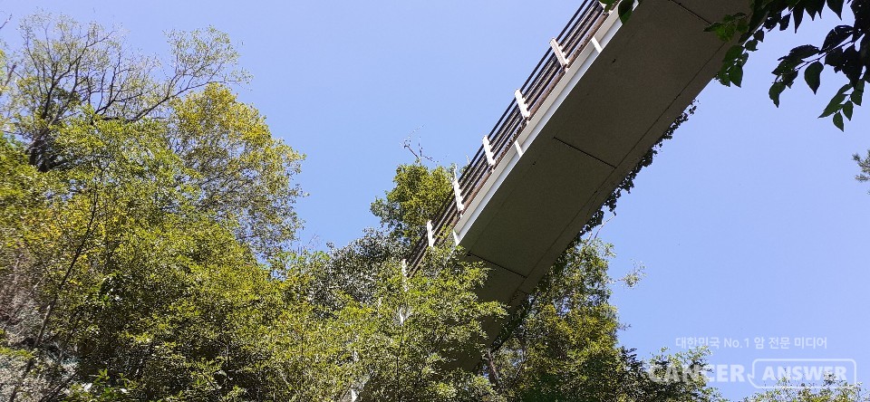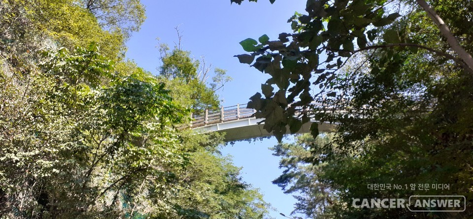 숲길과 숲길을 다리가 이어주고 있습니다.