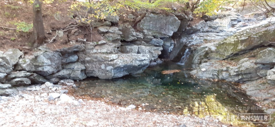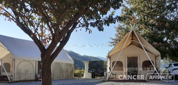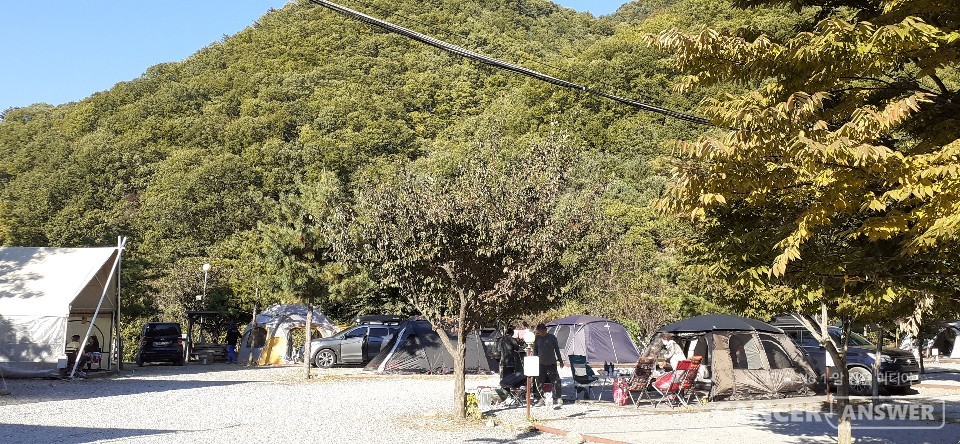 작은 개울과 폭포, 나무들이 어우러진 아담한 캠핑장입니다.