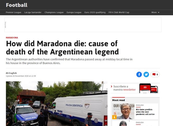 ▶급성 심근경색으로 사망= 마라도나의 사인인 급성 심근경색은 혈류와 직접 관련된 질병. 모든 사망이 심장마비이긴 하지만, 그의 경우는 조금 더 혈류와 관련이 있을 것으로 추정할 수 있다.