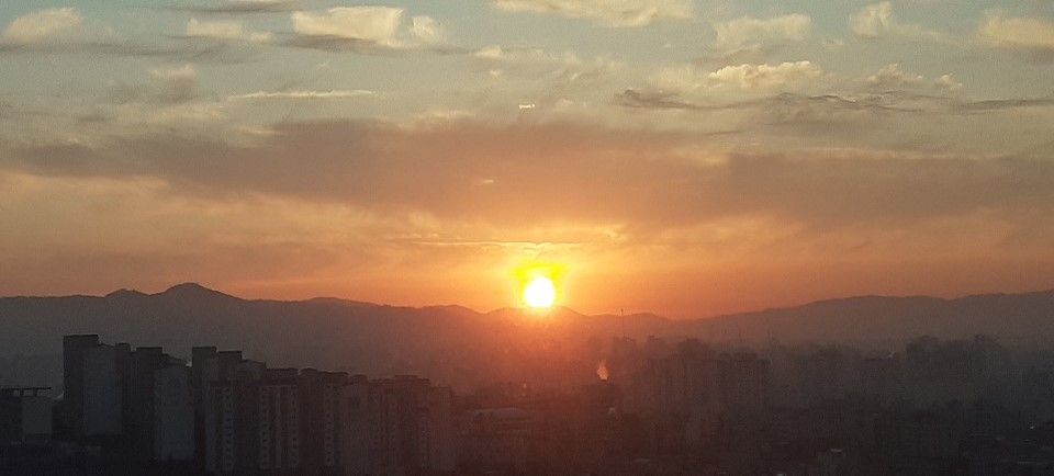 성북천변에 있는 아파트 꼭대기에서 본 서울의 일출입니다.