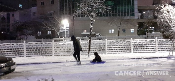 백설세상을 잠깐 만끽하는 사람들이 행복해 보입니다.