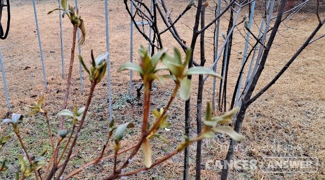 봄비 같은 겨울비가 내리고 꽃봉우리가, 새 잎이 고개를 내밀었다.