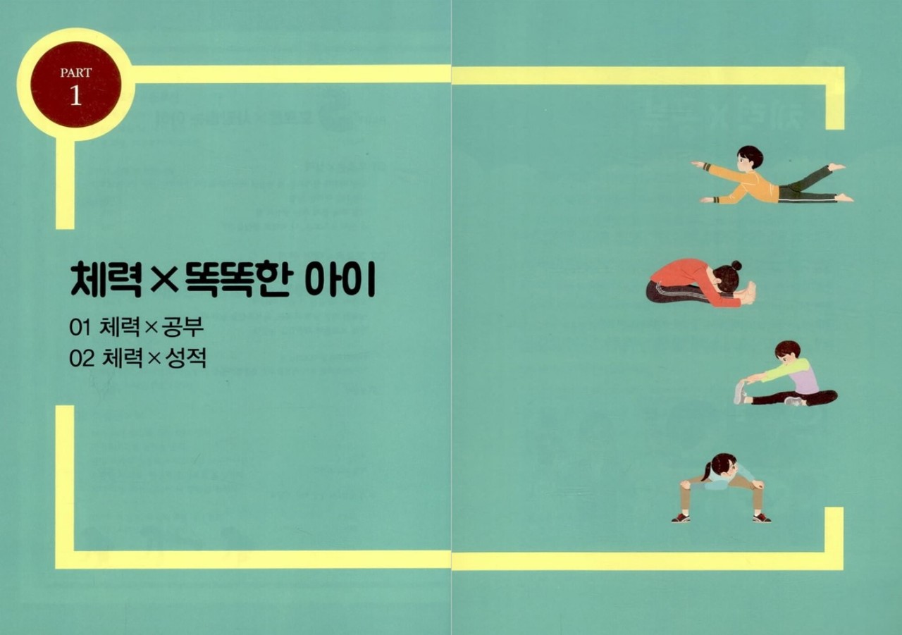 다섯 개의 파트로 만들어진 이 책은 '체력×똑똑한 아이', '시력×밝은 아이', '자세 교정×바른 아이', '식습관×성장하는 아이', '호르몬×사랑받는 아이'로 구성되어 있다. 체력, 시력, 자세 교정, 식습관, 호르몬 등 실천을 통해 향상시킬 수 있는 것들과 생활습관을 바르게 만들어갈 수 있는 것들을 통괄하고 있다.
