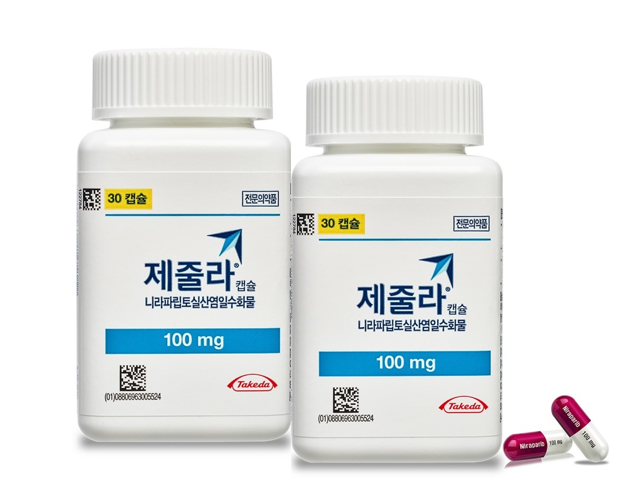 제줄라®는 BRCA 변이 여부와 상관없이 사용할 수 있는 첫 PARP 억제제로, 2017년 3월 미국 FDA 허가를 받았으며 국내에서는 2019년 3월 첫 허가를 받았다. 1차부터 4차 이상까지 난소암 치료의 모든 단계에서 허가를 받은 첫번째 PARP 억제제다.