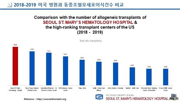 가톨릭대학교 서울성모병원 가톨릭혈액병원(병원장 혈액내과 김동욱 교수)이 세계 최초로 단일기관 조혈모세포이식 9천례를 달성했다.