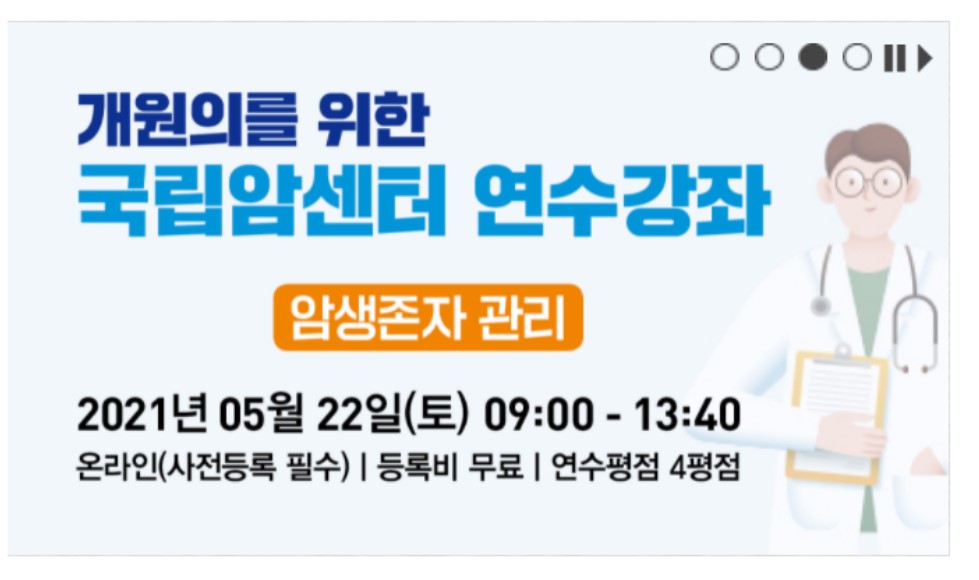 국립암센터가 5월 22일 개원의를 위한 연수강좌를 실시한다.
