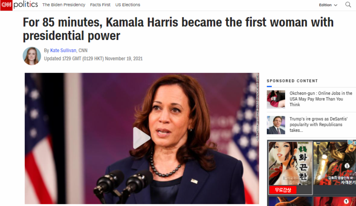 해리스 부통령은 대통령이 마취 상태에 있는 동안 백악관 웨스트 윙에 있는 부통령 사무실에서 자리를 지키며 업무를 처리했다고 백악관 관계자는 미국 언론을 통해 밝혔다.