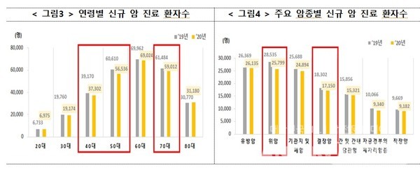 건강보험심사평가원은 최근 5년간(2016~2020) 암 질환 의료이용 현황 분석 결과를 발표했다. 해당 자료에 따르면 신규 암 환자수는 지난 4년간(2016-2019) 연평균 4% 증가한 반면, 지난 해는 전년 대비 3% 감소했다. 특히 연령별로는 40~50대와 70대에서 암종별로는 위암과 결장암에서 신규 진료 환자수가 비교적 크게 감소했다.