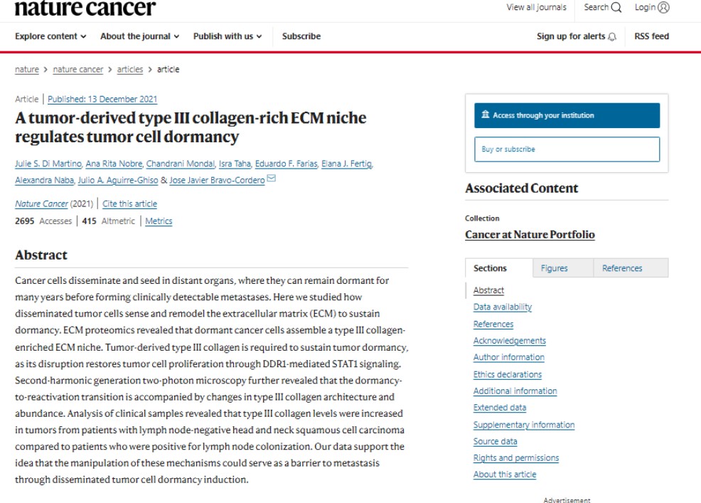 연구팀은 "우리 연구는 주요 부위에서 암세포의 휴면 상태를 유도, 유지함으로써 암세포가 다시 깨어나는 것을 막기 위한 제3형 콜라겐의 잠재적인 치료적 사용을 보여준다"고 결론지었다.