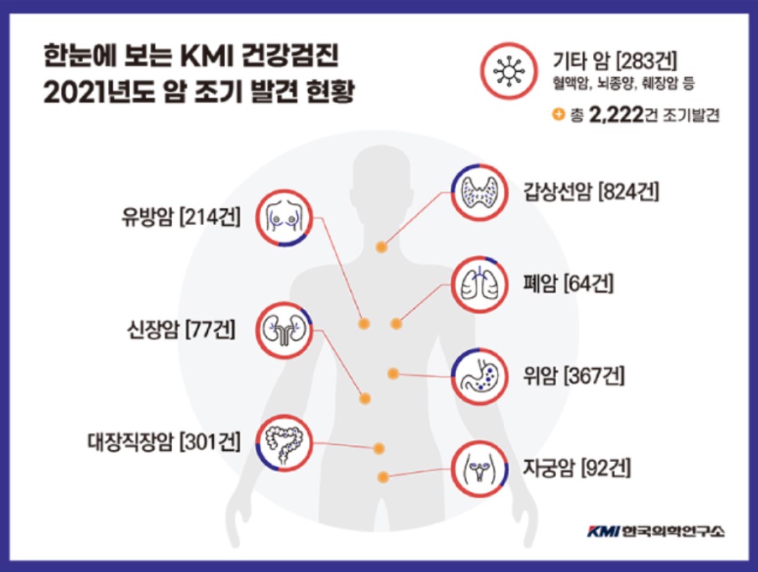 KMI한국의학연구소가 2021년 한햇동안 총 2222건의 암을 조기에 발견했다.