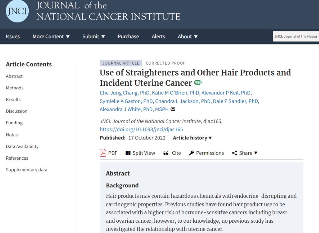 연구 결과, 스트레이트 파마 약(화학 모발 스트레이트 제품)을 자주 사용한 여성은 그렇지 않은 여성보다 자궁암에 걸릴 위험이 약 2.5배 높은 것으로 나타났다. 이 연구 결과는 '국립 암 연구소 저널(Journal of the National Cancer Institute)'에 실렸고 뉴욕타임스를 비롯한 미국의 많은 매체들이 이 연구를 소개했다.