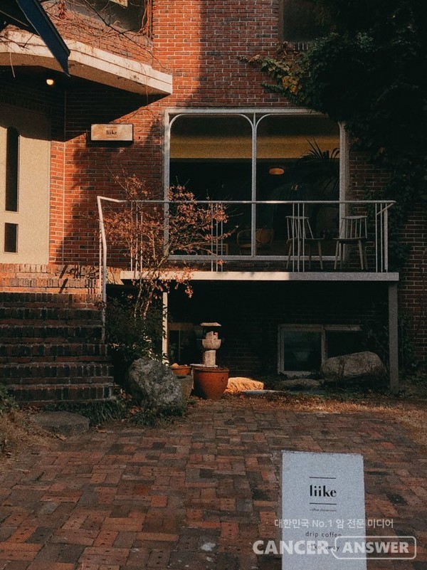 빨간 벽돌의 단독주택 안에 위치한 카페 리이케.