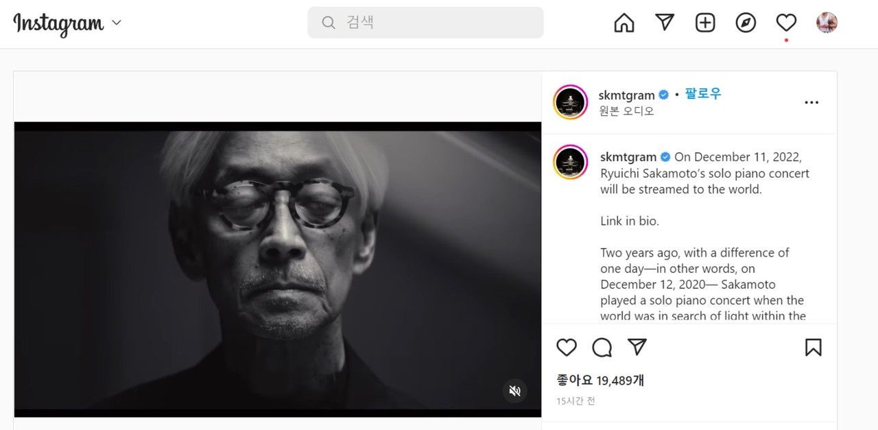 사카모토는 “라이브로 콘서트를 할 체력이 되지 않는다. 이런 형식으로 연주를 하는 것은 이번이 마지막이 될지도 모른다”고 인스타그램을 통해 밝혔다. 어쩌면 마지막 될지 모를 거장의 콘서트가 뜻깊은 연말선물이 될 듯하다.