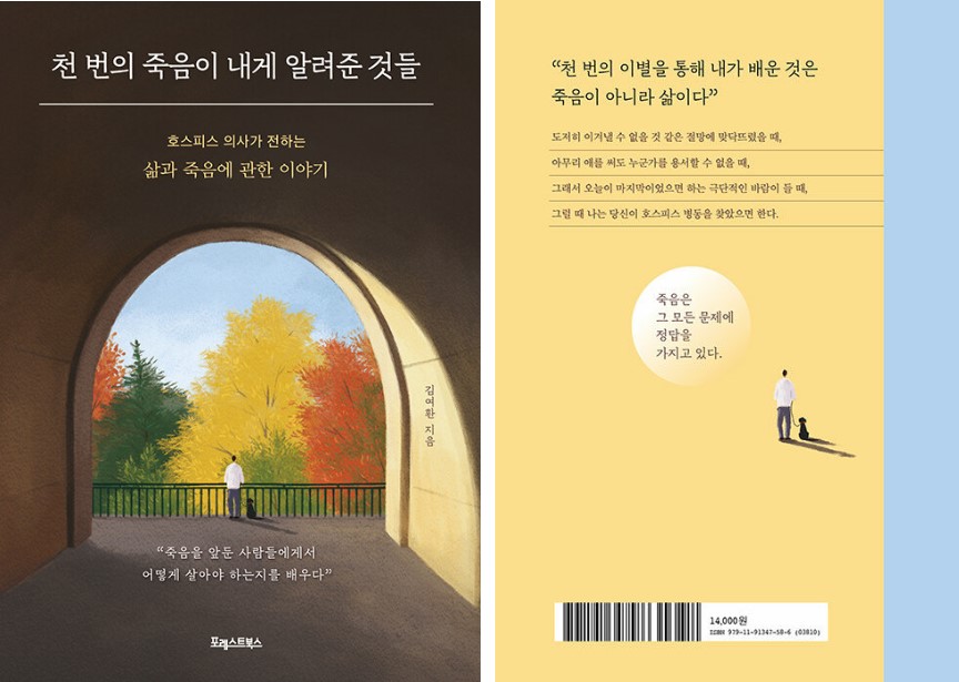 극심한 암성 통증으로 고통받는 환자들을 마음으로 돌보고, 1000명이 넘는 환자들에게 누구보다 안타까운 마음으로 임종선언을 한 호스피스 의사 김여환 씨. 수없이 임종 선언을 했어도 여전히 누군가의 죽음에 담담해질 수 없다고 말하는 그녀, 호스피스 의사의 책 <천번의 죽음이 내게 알려준 것들>(포레스트북스)이다.