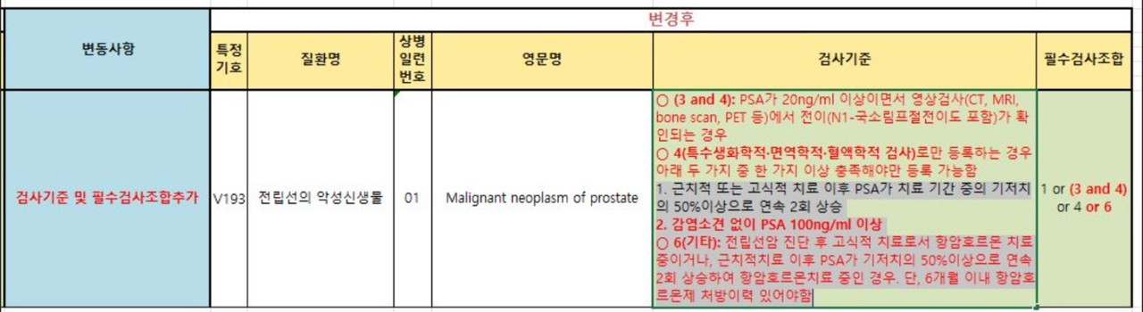 전립선암 산정 특례 등록기준이 내년 1월부터 변경되면서 필수검사항목 2개와 검사기준 1개가 추가된다.