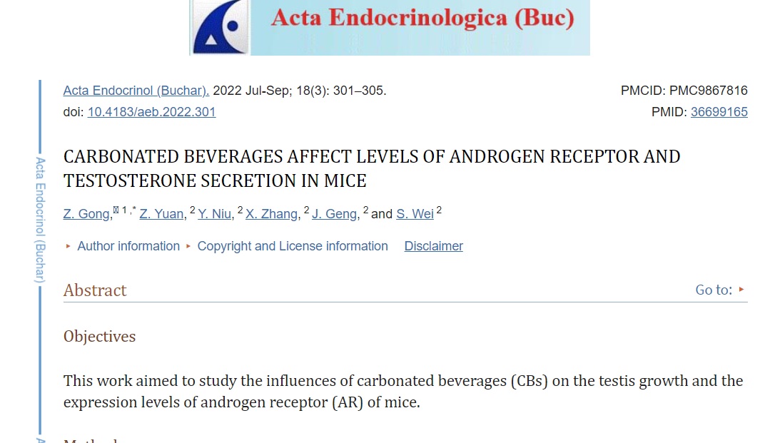 물만 마신 생쥐의 테스토스테론 농도는 약 23 나노몰라(nmol/L·1리터당 나노몰)에 불과한 반면 100%의 코카·펩시콜라를 섭취한 생쥐의 테스토스테론은 농도는 30nmol/L에 달했다.