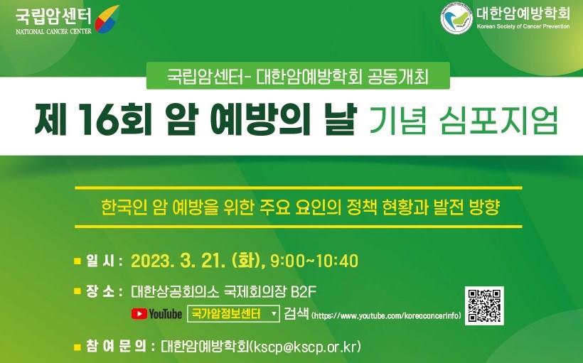 국립암센터(원장 서홍관)와 대한암예방학회(회장 현진원)는 '암 예방의 날'인 3월 21일 대한상공회의소 국제회의장에서 개최한 '암 예방의 날 기념 심포지엄'이 100여명의 관련 분야 전문가들이 참석한 가운데 성료했다고 밝혔다.