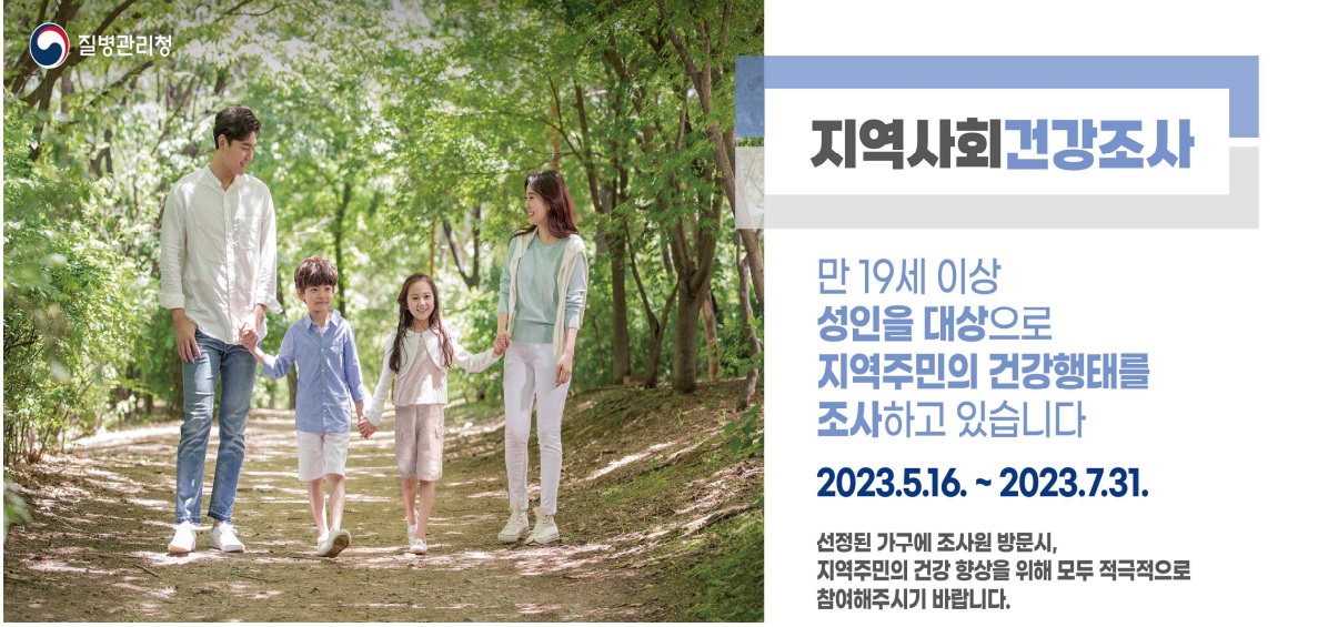 지역주민의 건강 실태를 파악하기 위해 질병관리청(질병청)이 매년 표본을 정해 실시하는 지역사회건강조사가 내일(5월 16일)부터 전국 성인 23만명을 대상으로 시작된다.