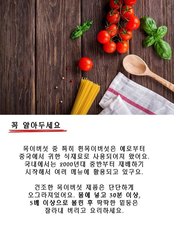 관련기사 항산화·항암성분 듬뿍... 만들기도 쉬운 브로콜리 요리 무 생채에 버무린 붉은 피망, 항암 효과 크고 소화에도 도움 '항암채소의 대표주자' 가지와 새싹채소의 콜라보 항암 푸드 시금치·팽이버섯 살짝 데쳐 조물조물…항산화 성분 가득 "비타민D 영양제, 우울증 예방ㆍ개선 효과 없어" 키워드 #버섯요리 #항암식단 #반찬만들기 #목이버섯 #미학부부 #건강한요리 #목이버섯효능 #흰목이버섯 #검은목이버섯 정리=홍헌표 기자 bowler1@healer-net.co.kr 다른기사 보기 저작권자 © 캔서앤서(cancer answer) 무단전재 및 재배포 금지 당신만 안 본 뉴스 흰머리가 암과 싸운 흔적이라고? 도쿄대 연구팀 "암세포 방어 메커니즘과 관련" 고 백성문 변호사가 투병했던 부비동암은 어떤 암? 매일 40분씩 빨리 걷기...췌장암ㆍ대장암 위험 17% 감소 '렉라자+리브리반트' 병용요법, 비소세포폐암 최우선 치료옵션 인정 내가 지냈던 암요양병원, 절망 속에서 삶을 다시 배우게 해준 학교였다 내 어릴 적 트라우마... 생애 첫 겨울잠바의 기억 암은 축복의 이름으로 찾아온 선물이었습니다 흰머리가 암과 싸운 흔적이라고? 도쿄대 연구팀 "암세포 방어 메커니즘과 관련" 댓글삭제 삭제한 댓글은 다시 복구할 수 없습니다. 그래도 삭제하시겠습니까? 비밀번호 닫기 기사 댓글 0 댓글 접기 로그인 후 이용 가능합니다. 댓글 내용입력 비회원 로그인 이름 비밀번호 댓글 내용입력 댓글쓰기 계정을 선택하시면 로그인·계정인증을 통해 댓글을 남기실 수 있습니다. 회원 로그인 비회원 글쓰기 이름 비밀번호 자동등록방지 로그인 옵션 창닫기 주요기사 암치료 중 많이 하는 질문 (1) 손발저림 어떻게 해결하나요? 만성골수성백혈병, 항암제 치료 효과 예측 가능 가을의 발 뒤꿈치 겨울이 보네 최근 주목받는 유방암 치료제 버제니오·티루캡은 어떤 약? 혈액검사 호중구 수치 해석하는 법...이럴 땐 즉시 응급실 가야 암, 인생 후반전의 꿈을 열어준 고마운 존재