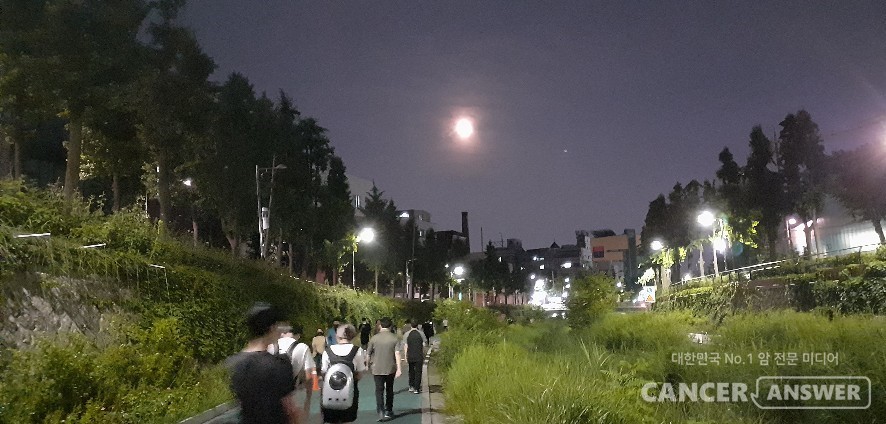 더위를 피하자는 뜻도 있지만, 낮에는 어디 갈 곳도 마땅찮은 코로나19 스트레스에서 벗어나고 싶어, 밤이면 공원으로 산책로로 사람이 몰립니다. 그 사람들이 달에게 비는 소망은 단순할 겁니다. 그 사람들의 소망은 소박한 것이겠죠. 그저 건강하기를~ 그저 빨리 이 어려움이 끝나기를~ 성북천에 비친 보름달을 보며, 저도 그렇게 빌어봅니다. 한 마음이 되어.