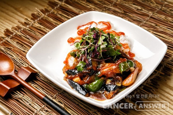 오늘도 음식 하나를 만들었는데요, 이름이 깁니다. ‘돼지목살 가지볶음 두부면 요리’.